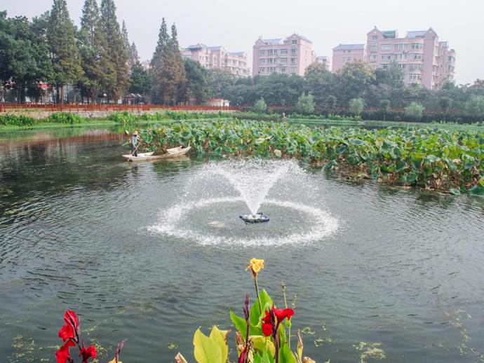三、沾天湖施工的工程量也已基本完成,但沉水植物種植效果有待進一步提高,挺水植物與浮葉植物品質應進一步優化。在改善水質的前提下,提高景觀效果與觀賞性,人工浮島調整布置區域,要做到功能性與景觀效果并舉。